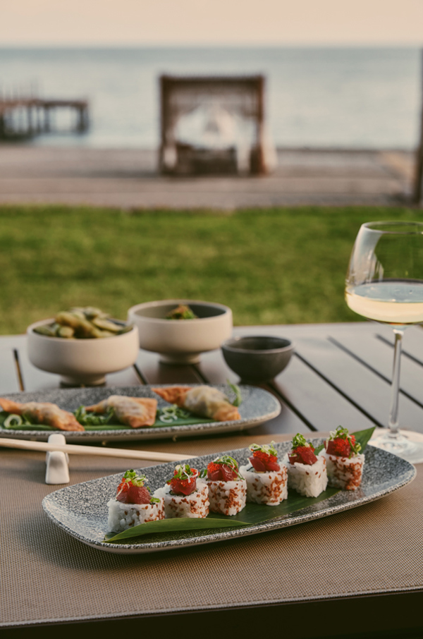 Das Menü kombiniert die Küchen fernöstlicher Länder wie China, Japan und Thailand und bietet eine breite Auswahl an Speisen.
